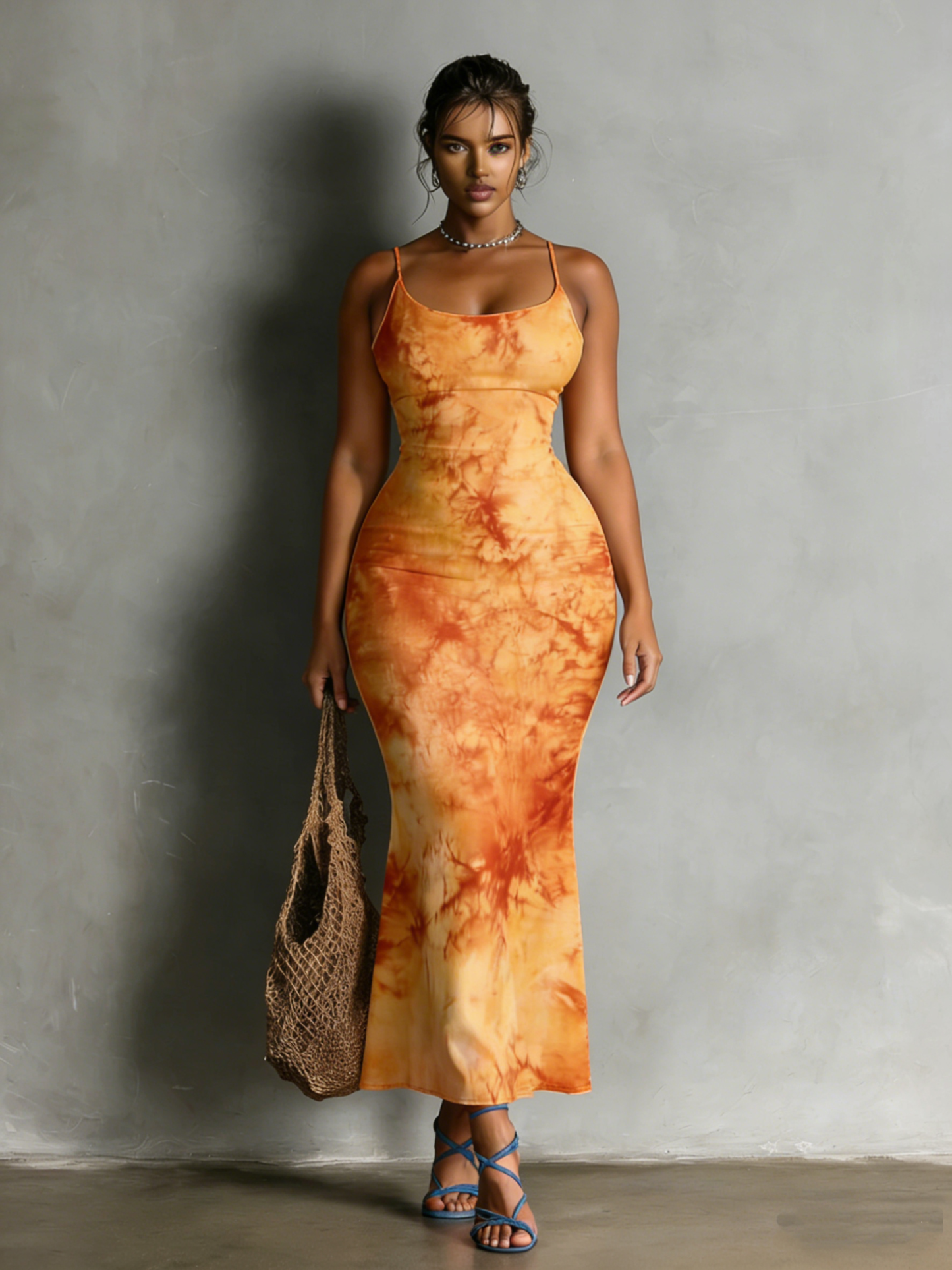 Orange Tie-Dye Spaghetti Strap Mermaid Dress